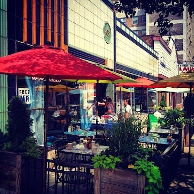Loved this place!! Lots of indoor seating with amazing wall art. Cute little outdoor patio area. They have fun cocktails and lots of food options. Recommend the salads, fries, and chicken tenders 🙂 paid parking and street parking nearby, super walkable area.