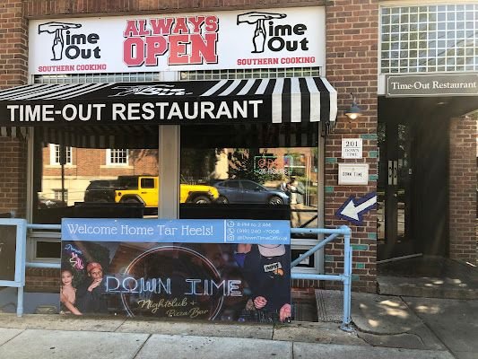 Downtime chapel hill night club, muy limpio los tacos de asada los mejores buen sabor los tragos bien servidos, los bartenders bien limpio bar, very clean place the food amazing taste, please try the tacos are amazing, the owner David very professional very friendly, and the bartender very nice I felt very welcome, celebrating my brother 25th birthday Downtime chapel hill the best place to be!!