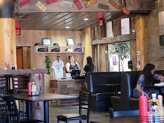 Dark, saloon style restaurant. We arrived at 4ish so it wasn’t busy. We were greeted fairly quickly and taken to a table. Then we waited about 5 minutes before a server showed up. There is no wine or beer list (warning bells). Gallo wine (that’s it) and mostly the Budweiser type beer with a couple different ones on tap. No craft beers and no IPAs. Boo!! They do have a full bar though if you’re into liquor. We were given the lunch menu which is sandwiches, burgers, chicken, and a few salads. We asked to see the dinner menu which was more limited, and they were out of the rib eye. We opted for the Mushroom and Swiss and Wild West burgers. We asked for medium but they were served medium well. They were nice sized burgers with huge buns (which we didn’t eat and didn’t ask for). The burgers were good but nothing special and not worth $15 a pop. The french fries were okay. They had a light breading but not much flavor. Dressed them up with salt and ketchup which made them better but I like to taste my fries when I splurge. Service was mediocre. There was a lot of chitchat among the employees, and they were eating their dinner so they kinda forgot about us. Total cost $51 for 2 beers, 2 burgers and tip. Too many “just okays” for us to return.