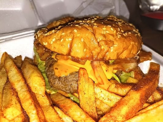 Pocas veces te puede sorprender una hamburguesa, ya que hay muchísimas buenas opciones, y combinaciones. En ésta ocasión, de verdad mi foto no le hace honor a tremenda hamburguesa!. (Se me aplastó un poco al llevarla a mi habitación) Carne súper jugosa, muy bien condimentada se nota la calidad de carne premium, muy suave al gusto, éste platillo incluye cebolla caramelizada, honguitos caramelizados, queso americano, lechuga, tomate, y un crujiente tocino que hace un suculento contraste con lo suave de la carne, de verdad tiene un exquisito sabor en cada bocado... El pan, es lleva un aderezo especial de la casa. Y las papitas sazonadas tienen un riquísimo sabor estilo paprika. En general buenísima! Incluyendo el aderezo ranch alimonado que pedí. 100% recomendada.