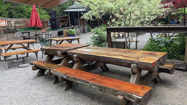 This place is sooooo cool!! The decor inside is super eccentric with so many different things to look at. Several mannequins and the ceiling had a super cool design. There is a fireplace and stained glass windows. The drinks and the food were amazing, and the staff was super friendly and catered to our specific requests. I loved it in there, and I will definitely be going back and recommending to others. This is definitely a must-see and eat place near Mount Hood!