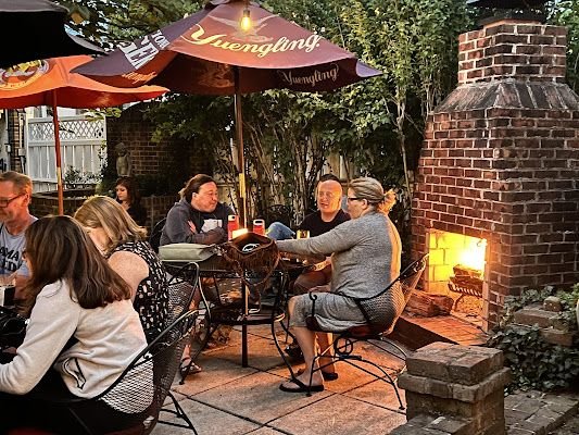 Fun pub in downtown Georgetown. Beautiful outdoor patio where they often host live music. Quaint indoor bar and seating areas both upstairs and down. We often have meetings there as there is a room upstairs with a large table. They now serve food with a good selection of options.