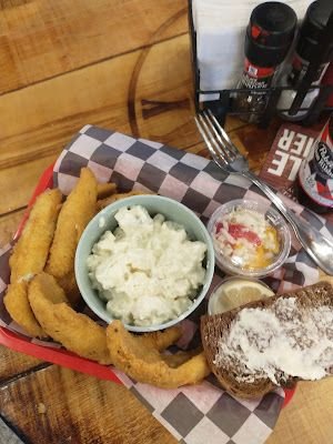 Only had a strawberry margarita on the patio. Patio is nice and seemingly rare for a town on the water. Strange. Got cornhole, picnic tables and chairs with cushions (thank God). So it's a great stop when the weather is nice and being in a old dark bar isn't what you're feeling.